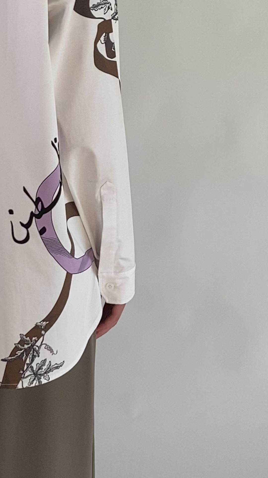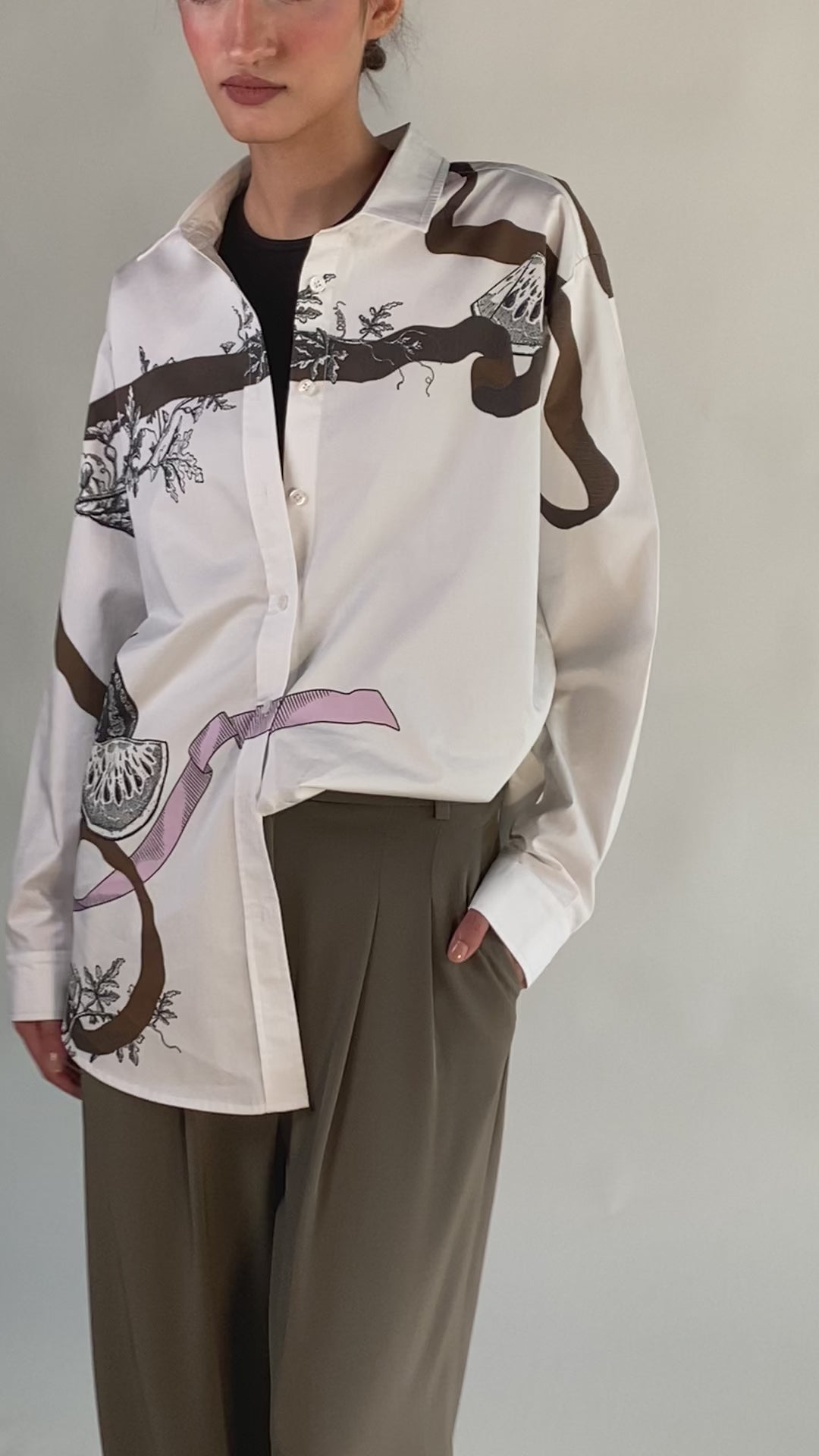 White with Green Ribbon Shade Oversized Classic Shirt Sale price$410.00