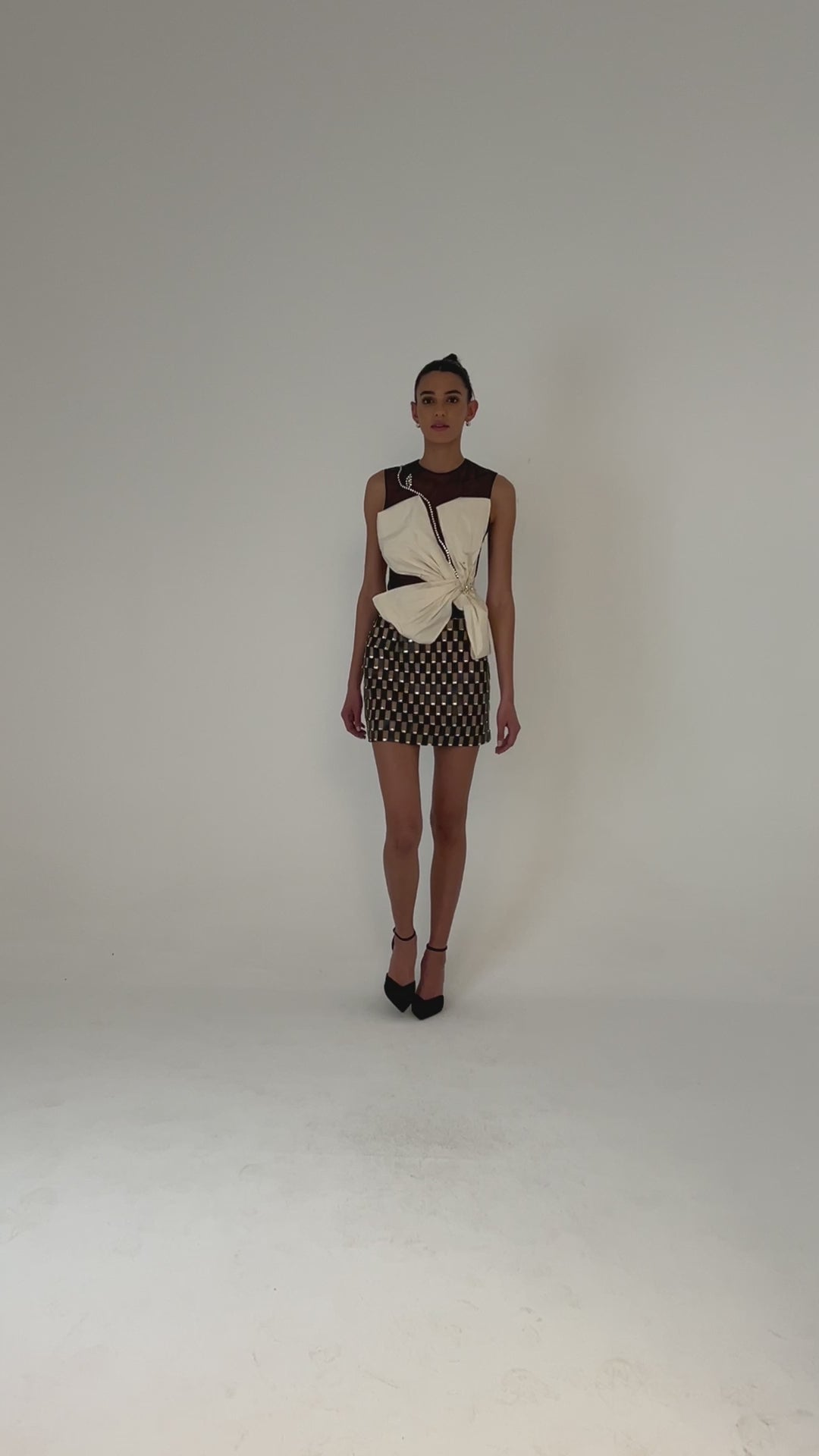 Lined checkered leather and crystal mini skirt. Back zip closure.
