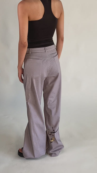 Hobi Falasteen Grey Pinstripe Wide Leg Trousers